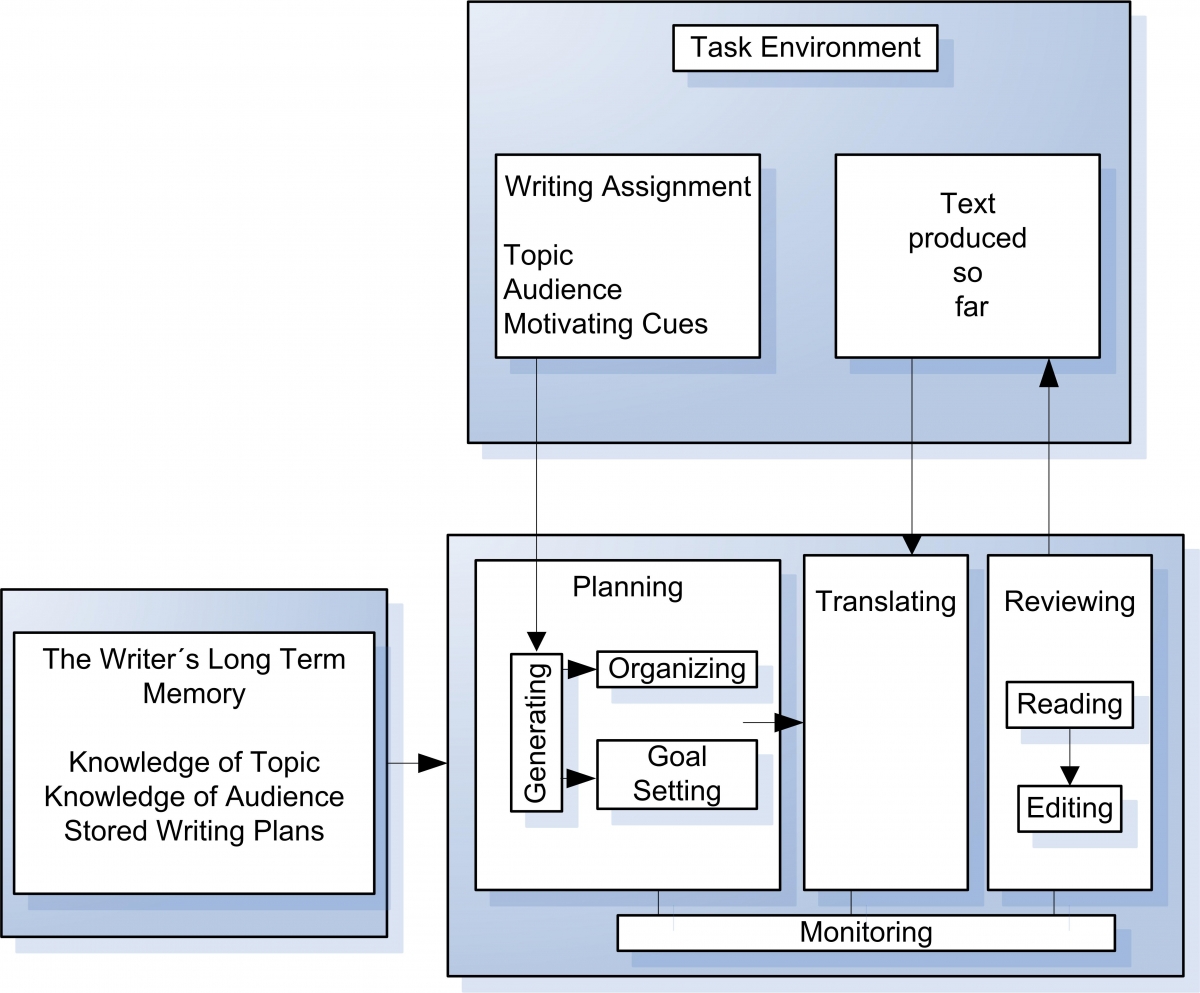 Hayes, J. & Flower, L. (1980). Identifying the organization of writing processes. In L. W. Gregg & E. R. Steinberg (Eds.), Cognitive processes in writing (pp. 3–30). Hillsdale, NJ: Erlbaum.
