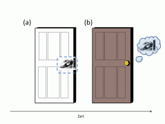 Ein einflussreiches Modell zur Erklärung von Prozessen der Verhaltensautomatisierung stammt von Logan (1988). Logan geht davon aus, dass jede Begegnung mit einem bestimmten Reiz (z. B. ein Türgriff) als einzelne Episode oder „Instanz“ (im Sinne einer abgeschlossenen Einheit) im Gedächtnis gespeichert wird. So eine Instanz enthält nicht nur Informationen über den Reiz, sondern auch über aktuelle Handlungsziele (z. B. „den Raum verlassen“) und die ausgeführte Reaktion („ziehen“). Zentral ist nun Folgendes: Sobald man dem gleichen Reiz später noch einmal begegnet, ruft dieser automatisch die frühere Verarbeitungsepisode aus dem Gedächtnis ab (siehe Abb. 1): Man „erinnert“ sich quasi an die früher gezeigte Reaktion—auch wenn einem dies nicht unbedingt bewusst sein muss— und kann diese schnell noch einmal ausführen. Reaktionen, die als Teil von Instanzen automatisch aus dem Gedächtnis abgerufen werden, können deutlich schneller ausgeführt werden als Reaktionen, die erst bewusst überlegt und geplant werden müssen. Typischerweise stellen sich automatische Abrufprozesse aber erst ein, wenn man häufig und in immer gleicher Weise auf einen Reiz reagiert; die Verknüpfung zwischen Reiz und Reaktion muss „geübt“ werden (wenn Sie gelernt haben, ein Musikinstrument nach Noten zu spielen, kommt Ihnen dies sicherlich bekannt vor). Laut Logan ist Verhalten vollständig automatisch, wenn es nur noch auf direktem Gedächtnisabruf basiert. Dies bedeutet, dass das Verhalten nicht mehr bewusst geplant werden muss, sondern einzig durch die Wahrnehmung eines Reizes ausgelöst werden kann. So laufen Tätigkeiten, die häufig in einer immer ähnlichen Umgebung stattfinden, automatisch ab, ohne dass wir sie bewusst initiieren. Automatisierte Verhaltensweisen haben jedoch auch ihre Nachteile: Es kann zum Beispiel sein, dass die abgerufene Reaktion in einer bestimmten Situation nicht passt: Im oben skizzierten Beispiel ist es nötig zu drücken, um die Tür zu öffnen; der Türgriff verleitet hier aber (aufgrund der Lerngeschichte oder seiner Ähnlichkeit zu einem anderen Türgriff, bei dem diese Handlung korrekt wäre) zur Ausführung der „Ziehen“ Reaktion. In so einem Fall führt der automatische Reaktionsabruf zu Fehlern oder Verzögerungen. Bedauerlicherweise hat sich die angelsächsische Lösung dieses Problems noch nicht unter deutschen Ingenieuren durchgesetzt (z. B. haben Türen in Großbritannien oder in den USA nur auf der Seite Griffe, wo auch wirklich gezogen werden muss; siehe Abb. 2).